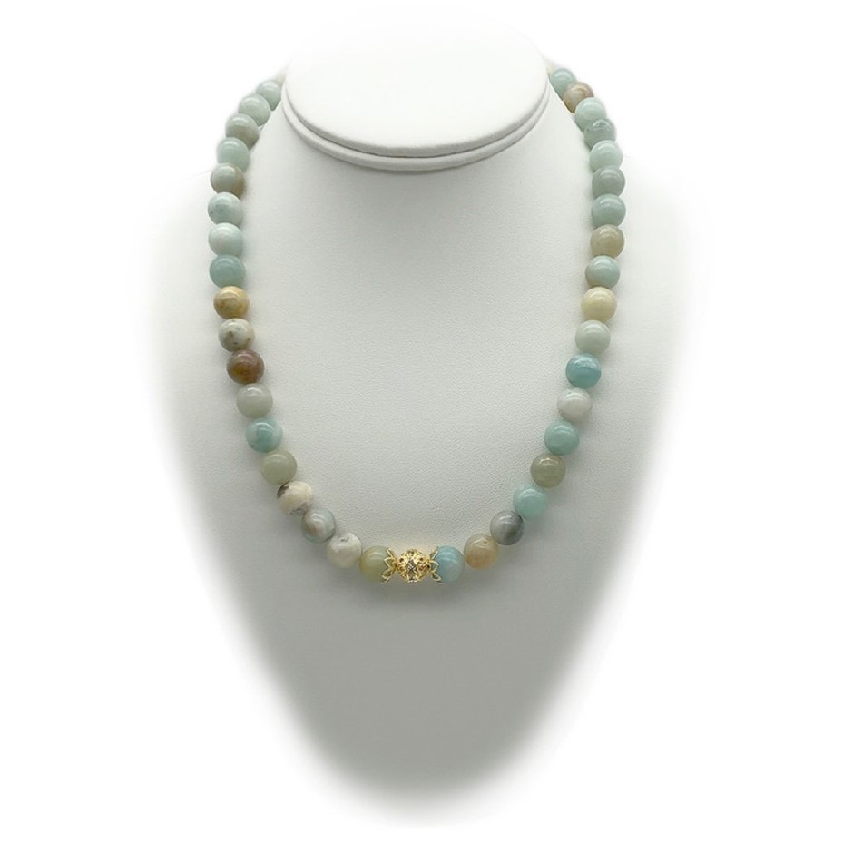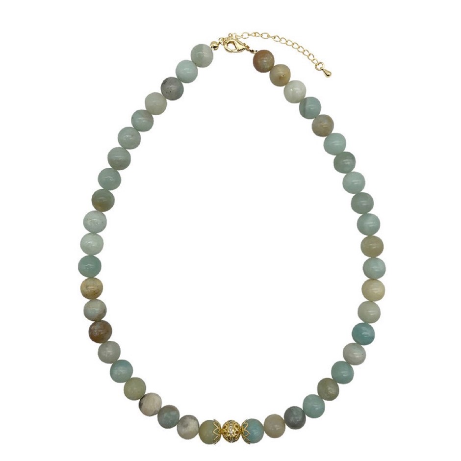 10mm Natural Amazonite Persian Love Gold Plated Rhinestone Necklace, Bracelet & Earring Set.
