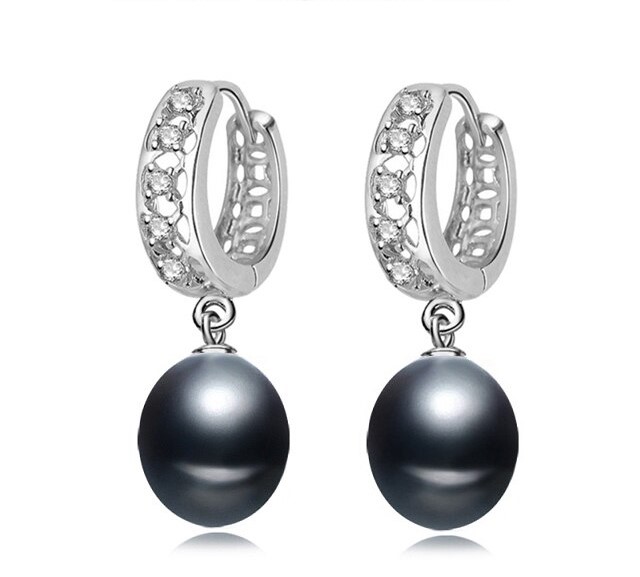 BIJ'OR - Stunning Simulated Diamond & Black Freshwater Pearl Drop Earrings
