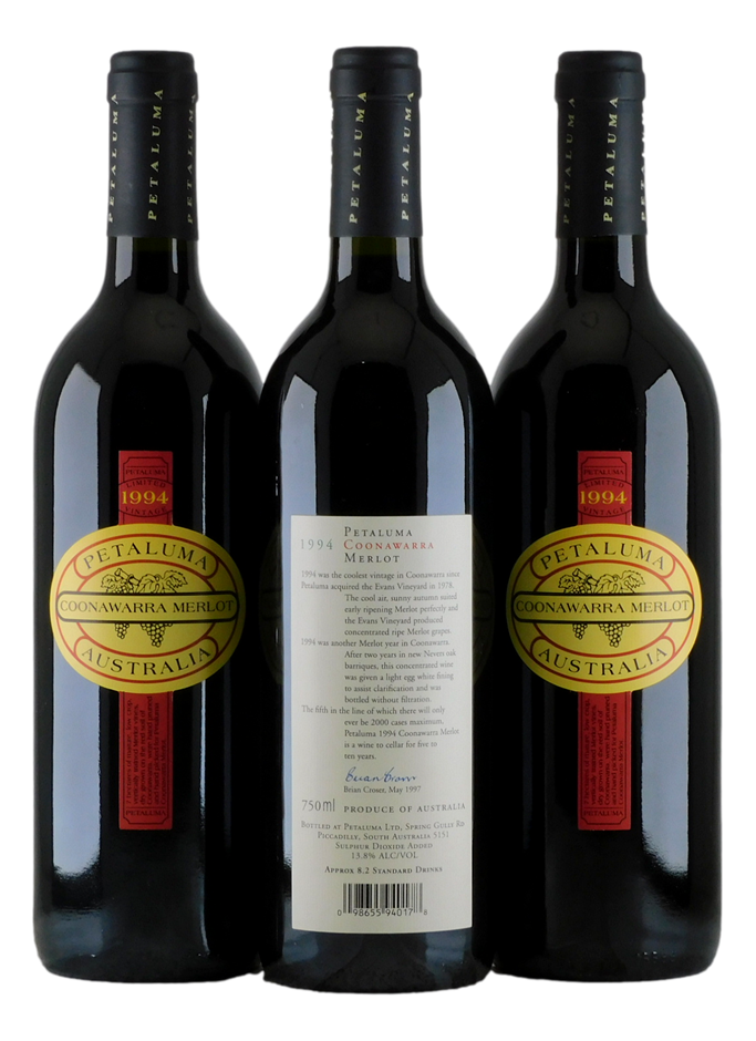 Petaluma Merlot 1994 (3x 750mL), Coonawarra. 5* Prov.