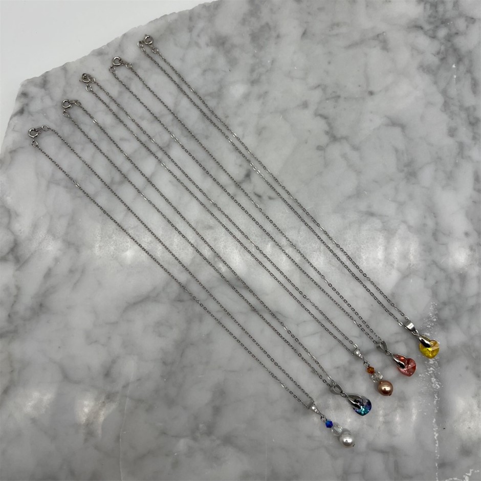 Swarovski® Austrian Crystal Platinum Plated Pendant Necklaces - 5 Pcs