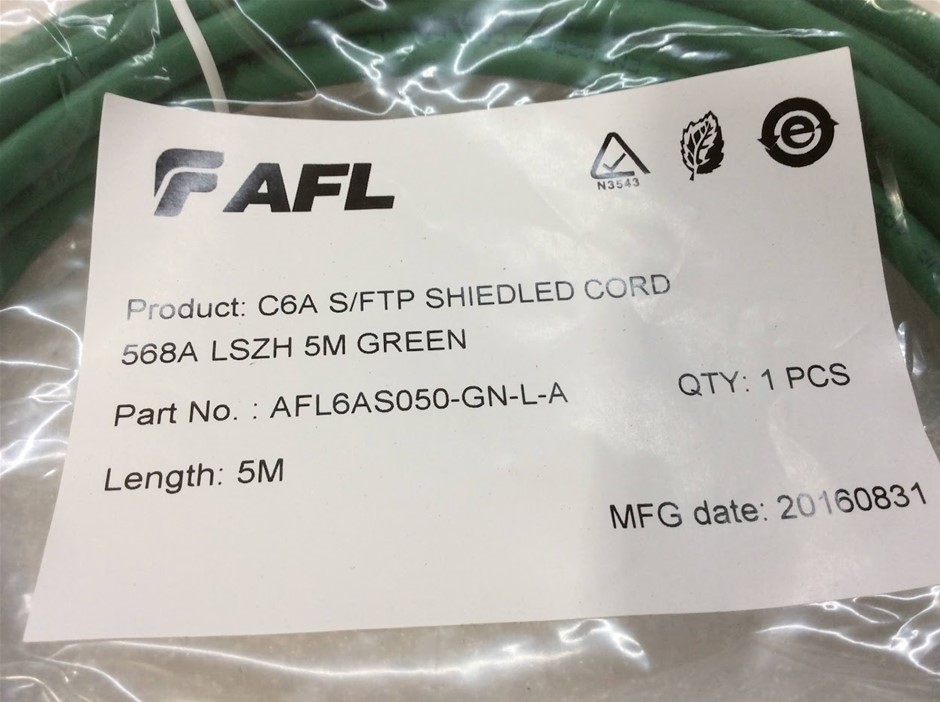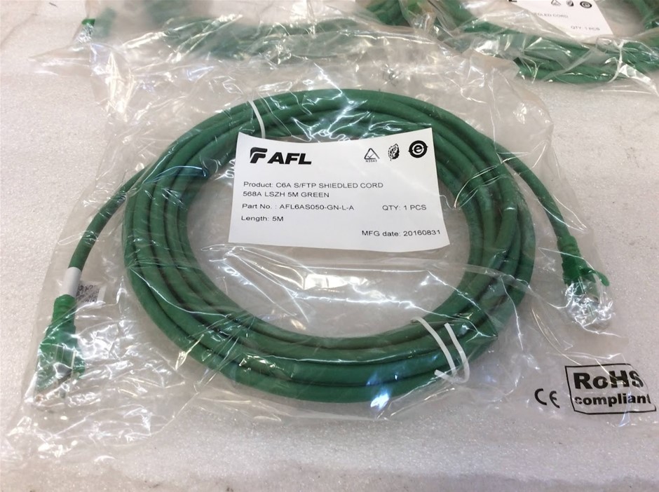 AFL AFL6AS050-GN-L-A Cat6A S/FTP Shielded Network Cable - New (Lot of 5)