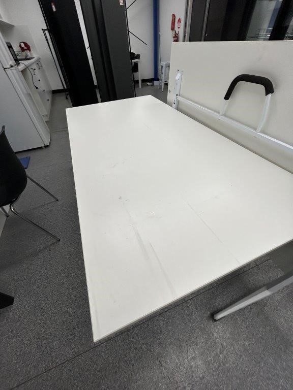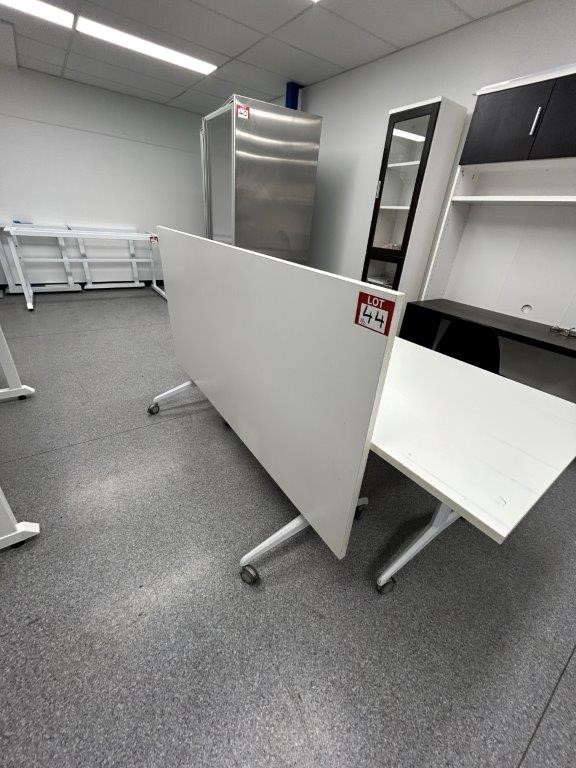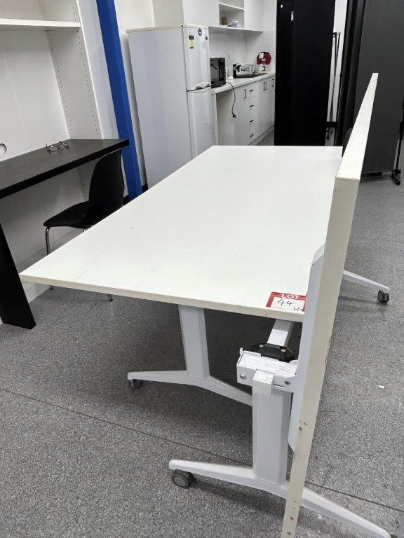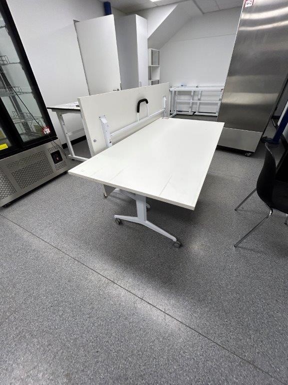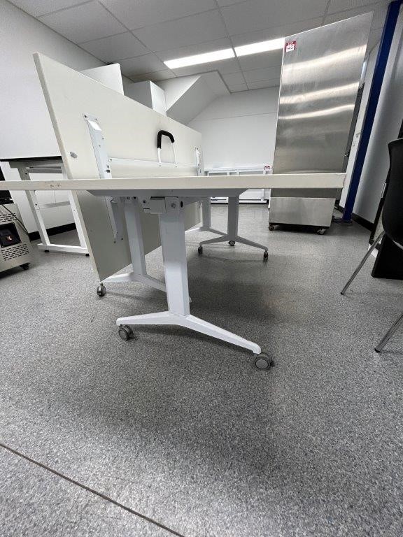 2 x White Metal/Laminate Mobile Folding Tables