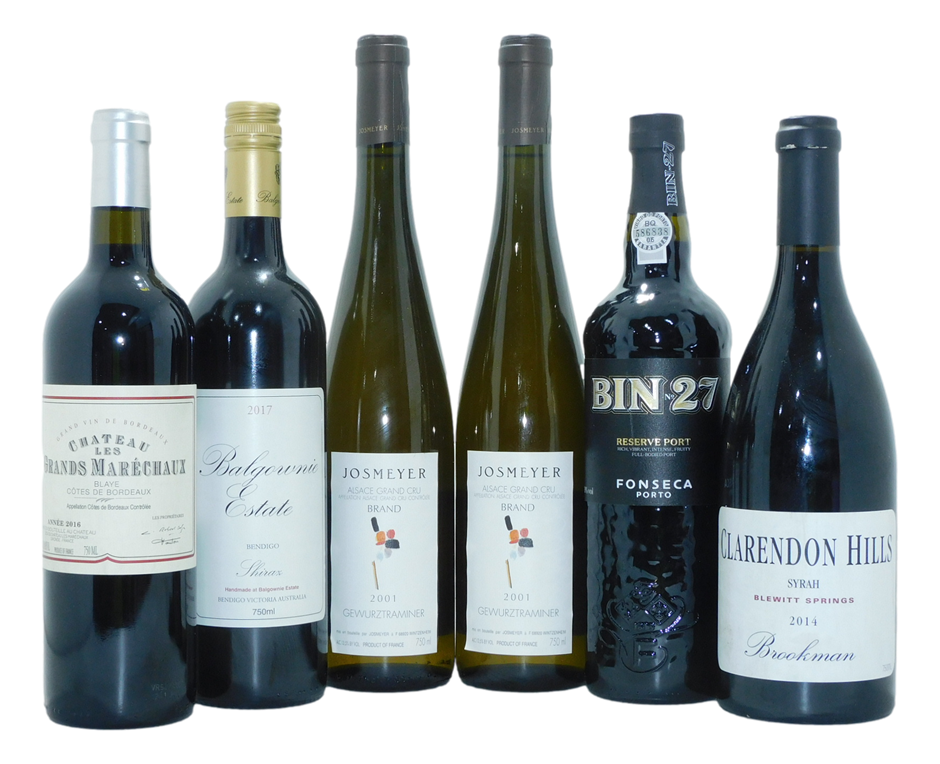 Josmeyer Gewurztraminer``Brand`` 2001 AlsaceChateau Les Grands Marechaux2016 (Cbla) Bordeaux FranceFonseca Bin No. 27 Nv SpainClarendon Hills ``Brookman``Syrah 2014 SABalgownie Estate Shiraz 2017 VIC (311227-6)