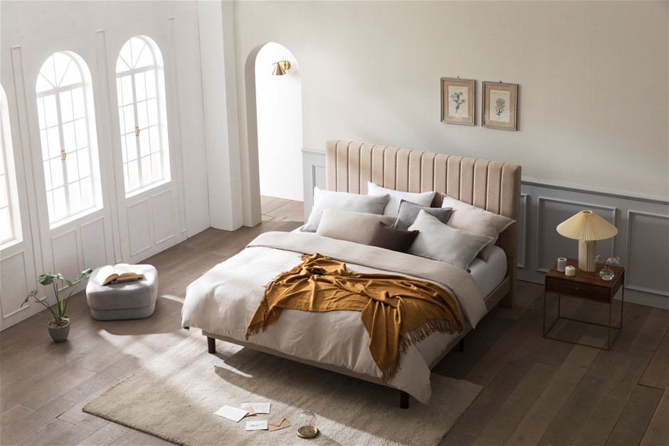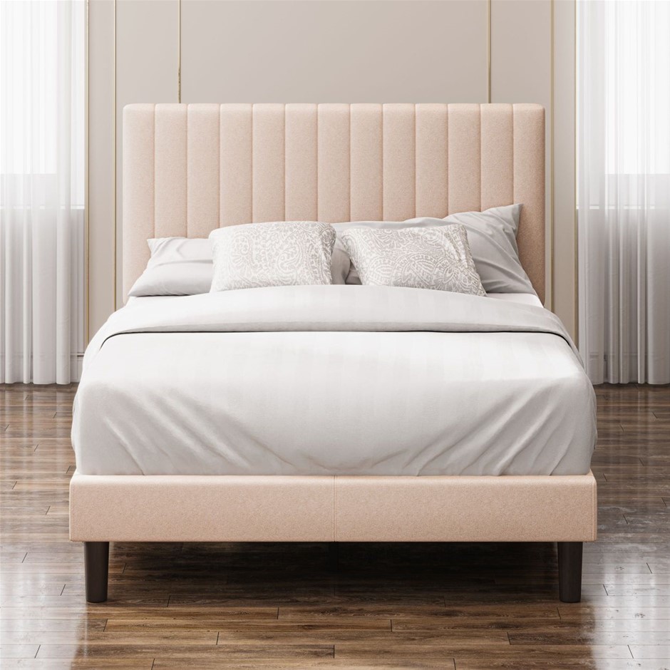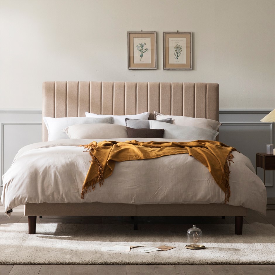 Zinus Premium Fabric Beige Bed Frame - King