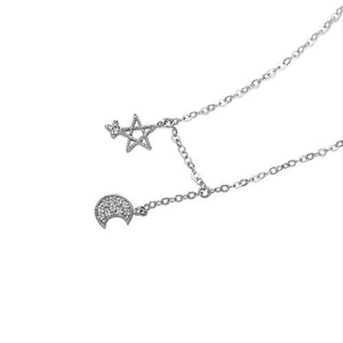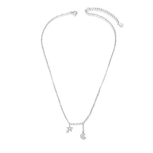 925 Sterling Silver Star & Moon Pendant Necklace with Simulated Diamonds