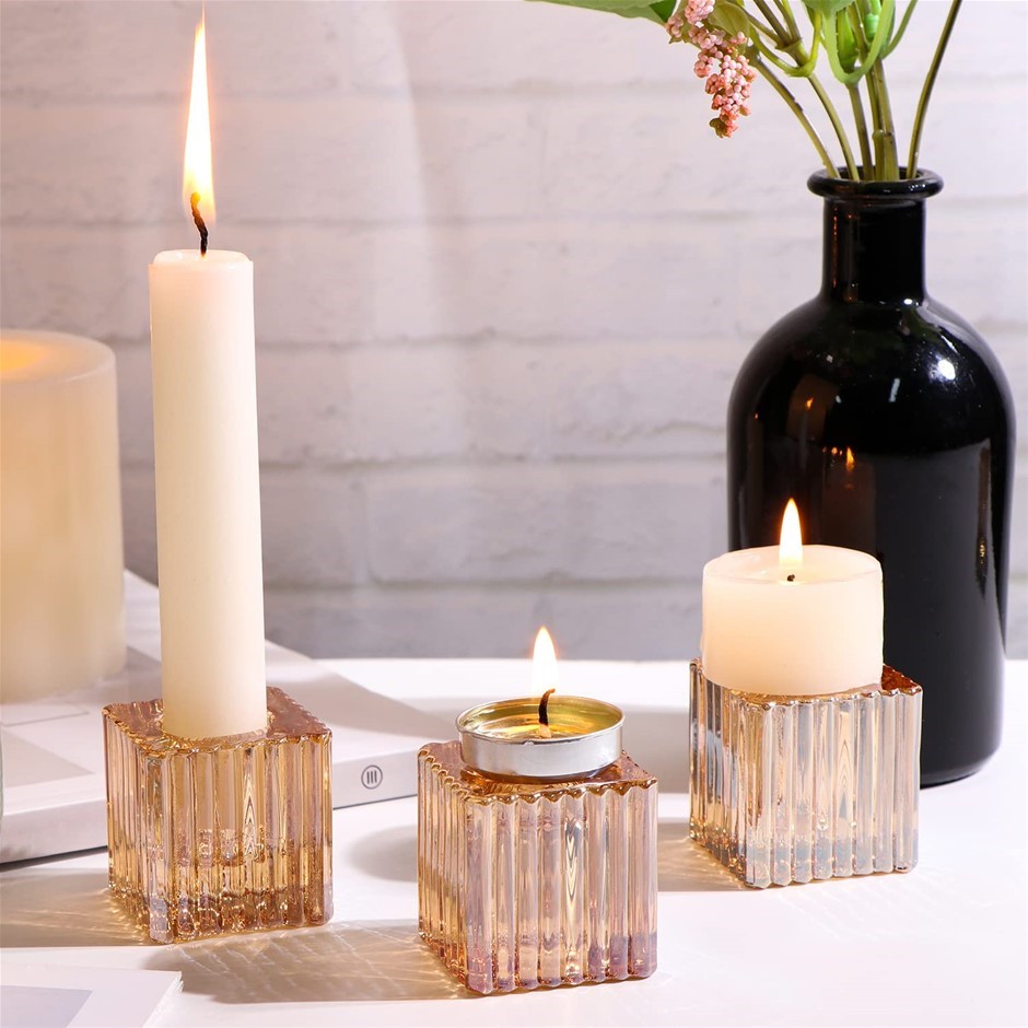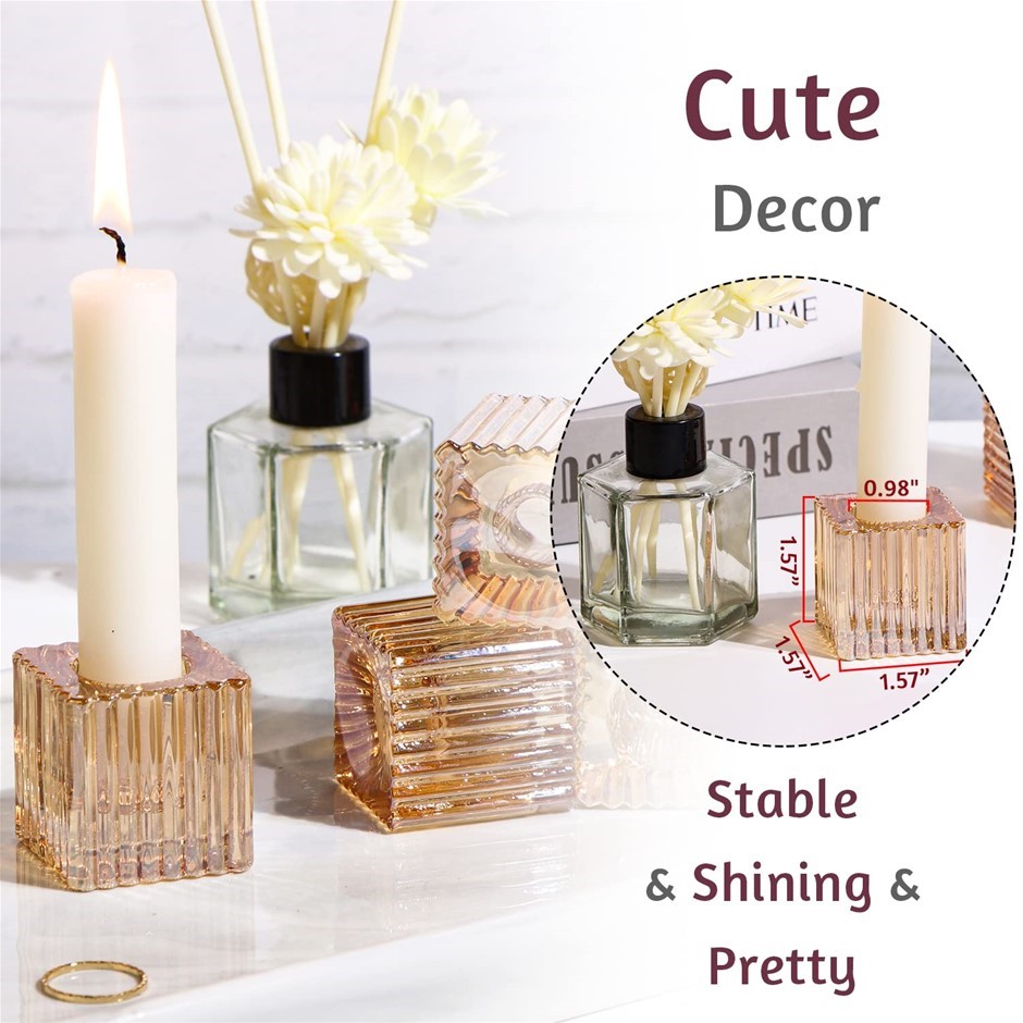 VERLENS Taper Candle Holders (Set of 4), Glass. (Code: B09VS4478Y) (140412-46)