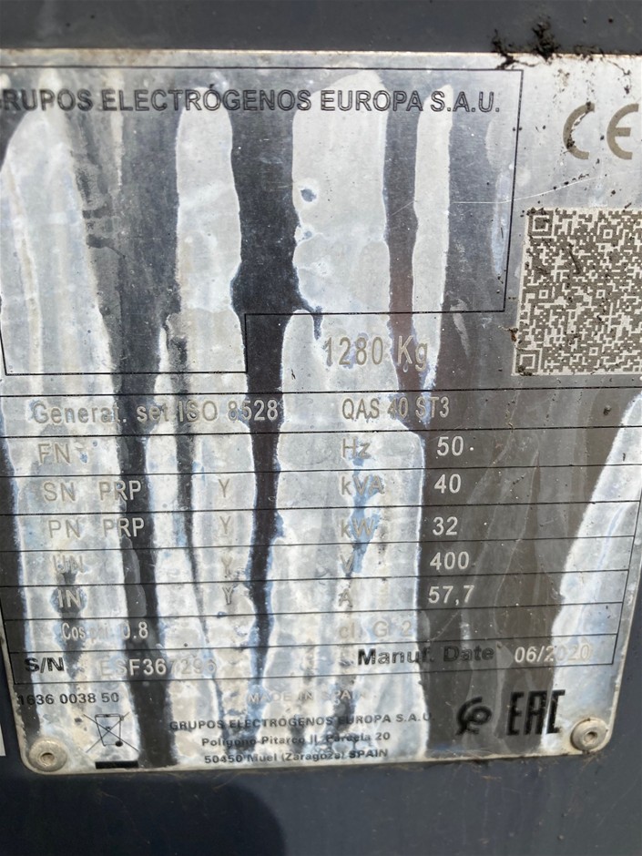 2020 Atlas Copco QAS40 Generator - Diesel - 40kva (Rockhampton)