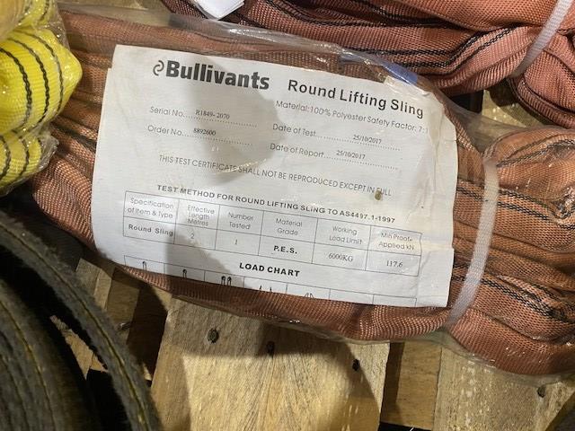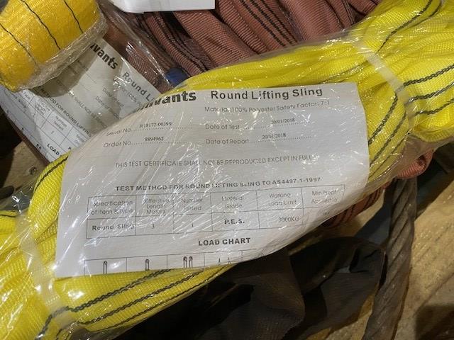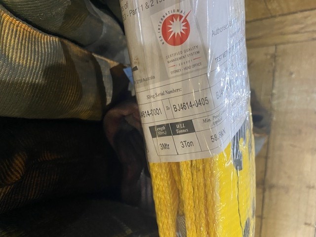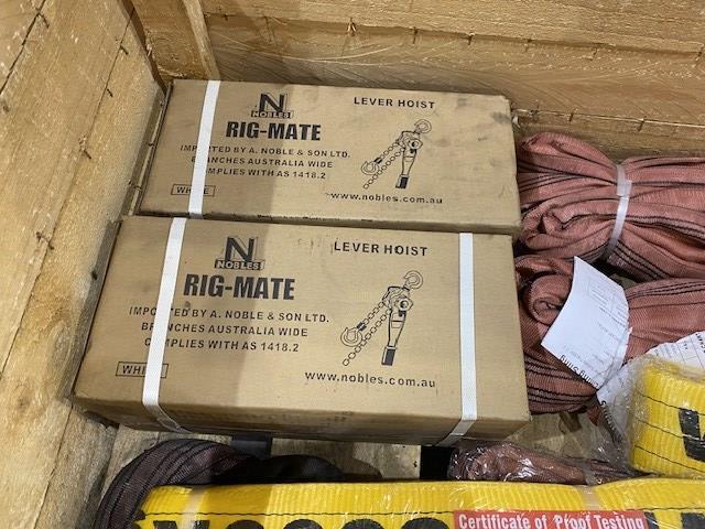 Qty of Assorted New & Used Soft Slings & 2 Lever Hoists
