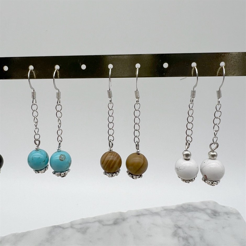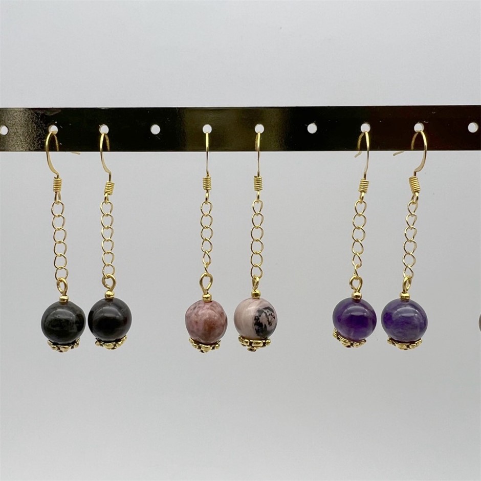 12 Pairs Assorted Gemstone & Pearl Drop Earrings