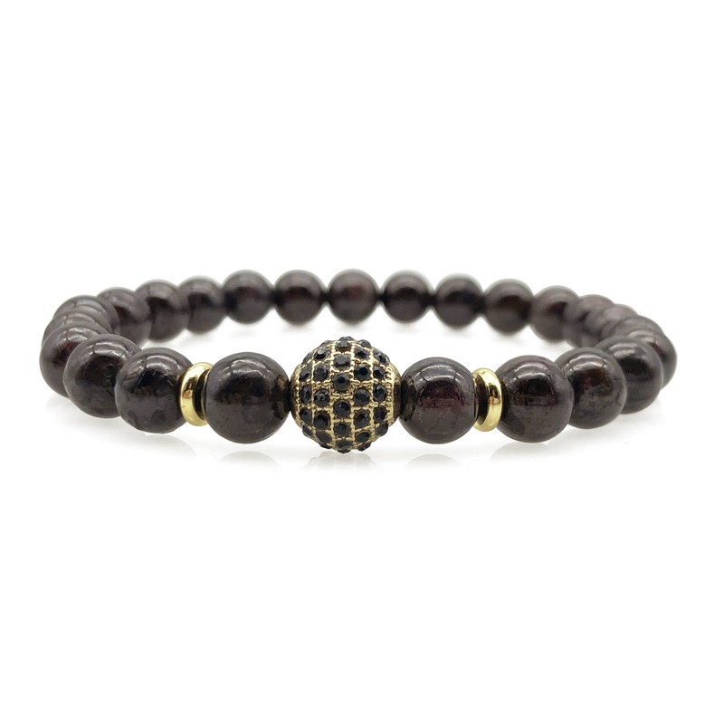 Men's 8mm Garnet & Golden Rhinestone Beaded Gemstone Bracelet