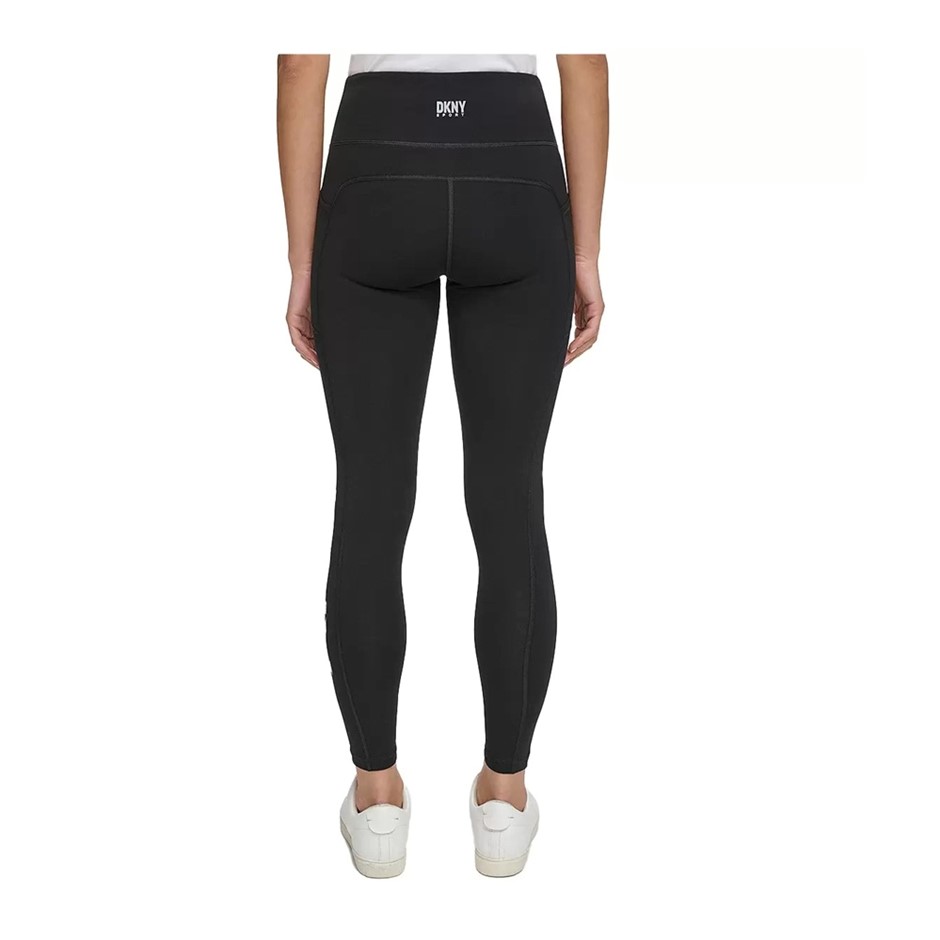 DKNY Women`s Logo Leggings, Size L, 90% Cotton, Black/Silver (BSV). (Code: 117449-BS-L) (332401-47)