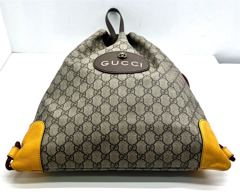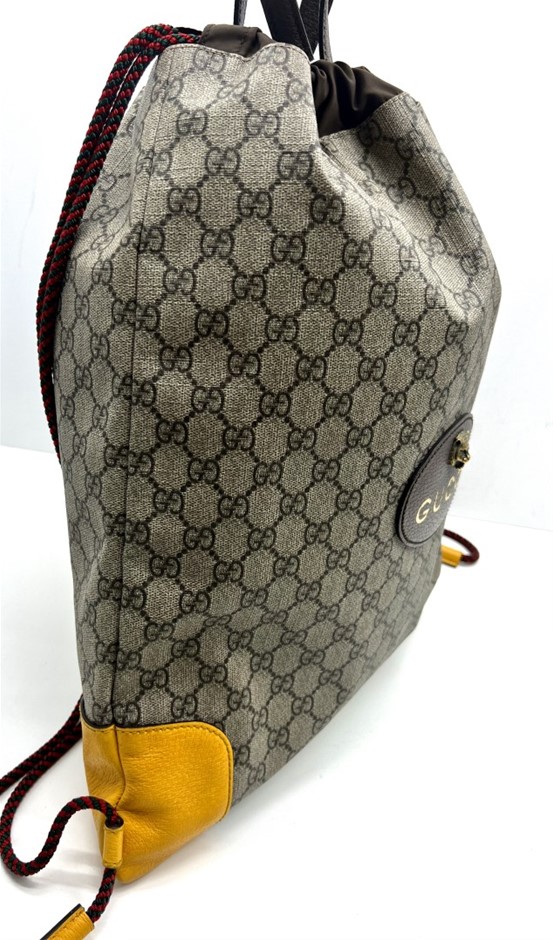 Gucci Neo Drawstring Backpack, Gucci Brown GG Leather & Canvas Backpack