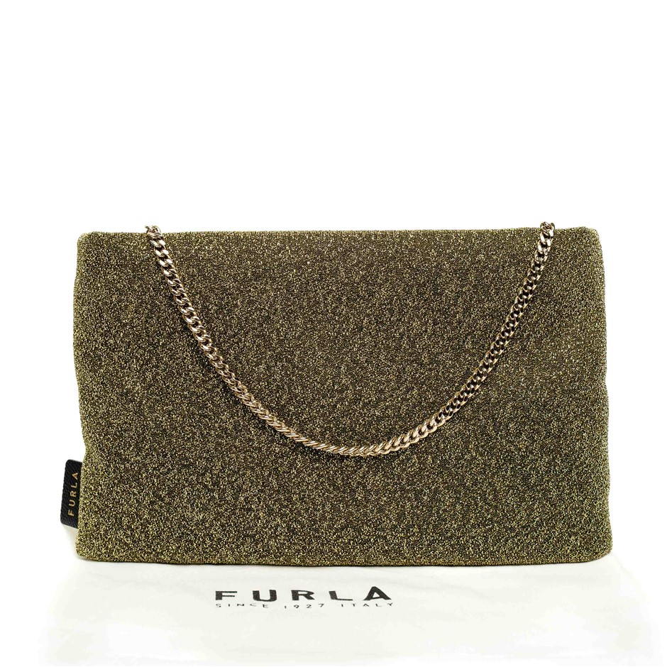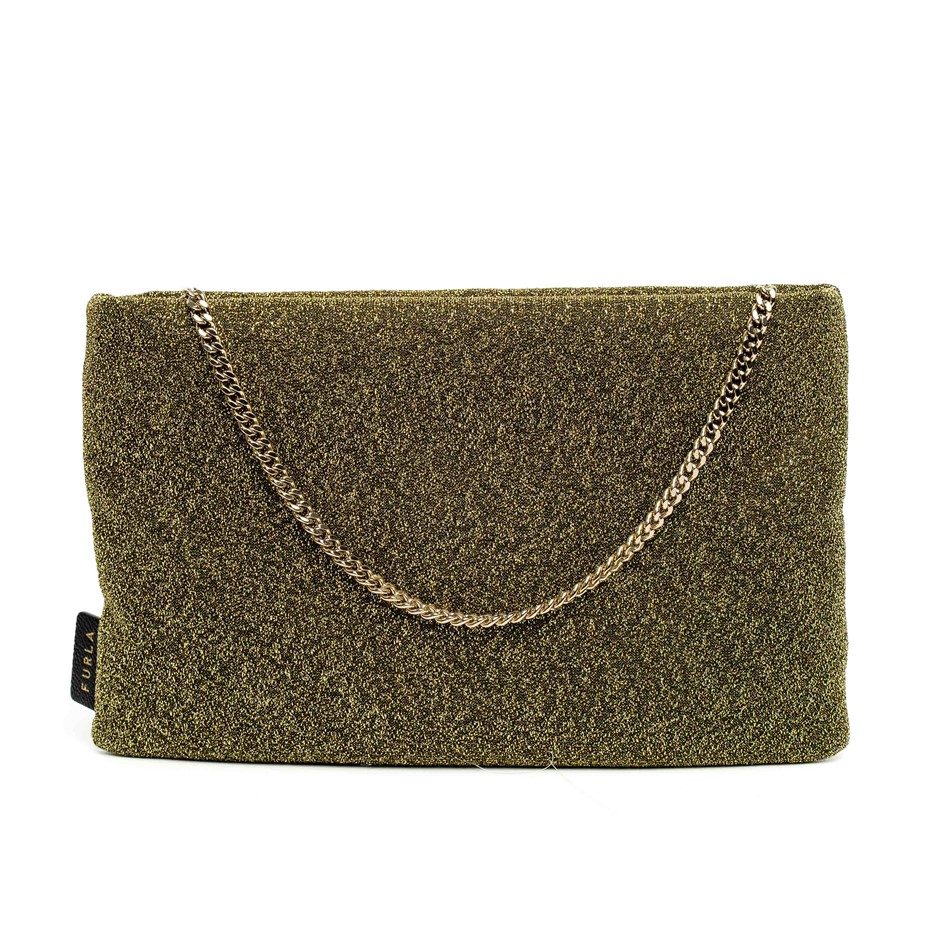 Furla Gold Glitter Chain Clutch Bag