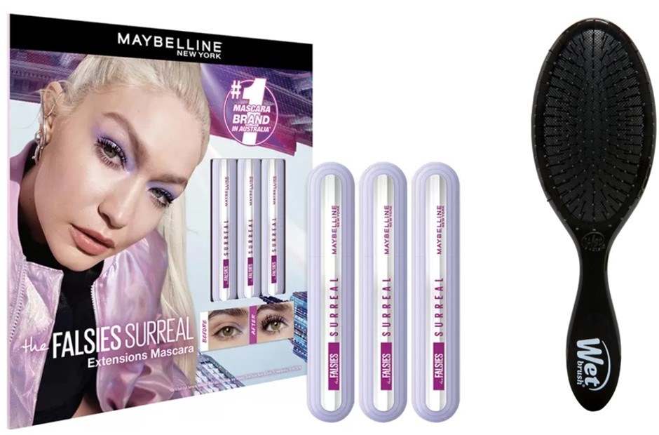 BEAUTY BUNDLE: MAYBELLINE Falsies Surreal Mascara (3-Pack, Very Black) + WET BRUSH Classic Brush (Black) (Code: JM059) (140253-49)