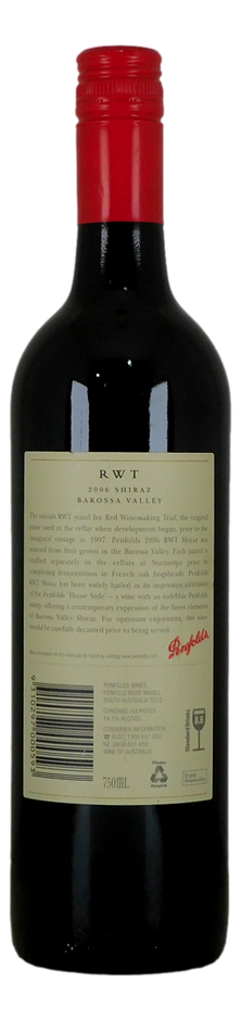 RWT Shiraz was launched in May 2000 with the 1997 vintage. Its style is opulent and fleshy, contrasting with Grange, which is more muscular and assertive. RWT is made from fruit primarily selected for its aromatic qualities and fine texture rather than sheer intensity or power of flavour. The result is a wine that helps to redefine Barossa Shiraz at the highest quality level.