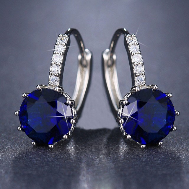 Designer Simulated Diamond Dark Blue Drop Earrings in Silver