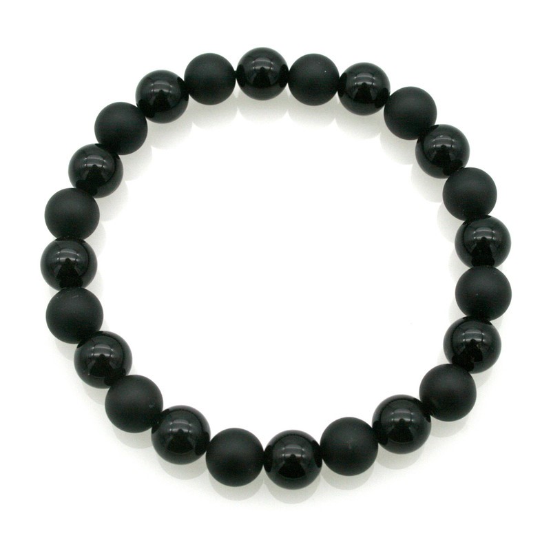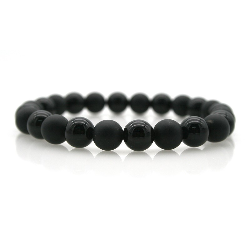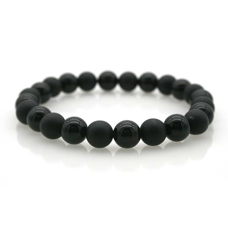 Men`s 8mm Natural Black Agate & Black Stone Stretchy Beaded Stretch Bracelet.