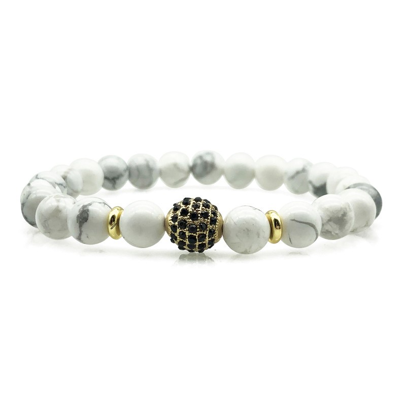 Men's 8mm Howlite & Golden Rhinestone Beaded Gemstone Bracelet