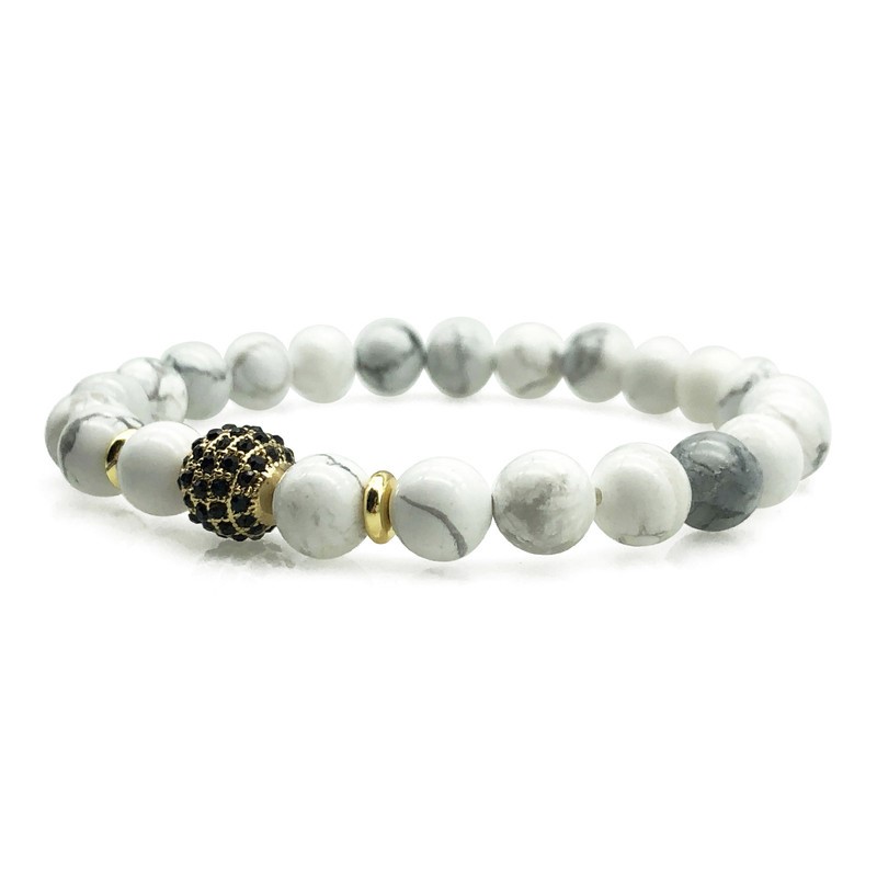 Men's 8mm Howlite & Golden Rhinestone Beaded Gemstone Bracelet