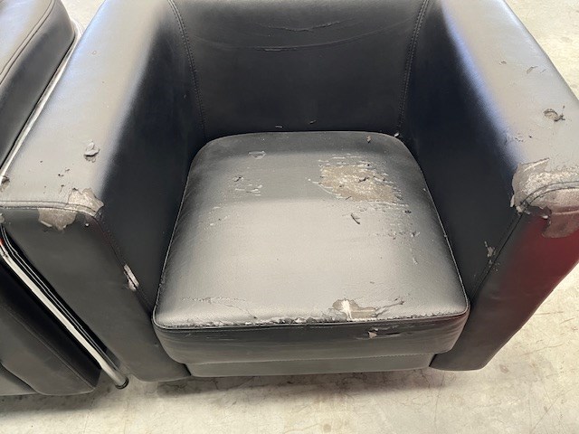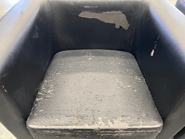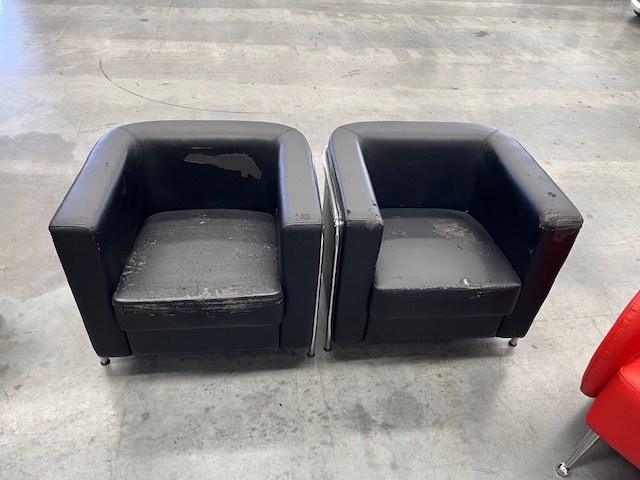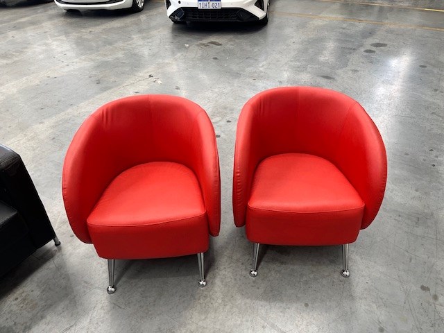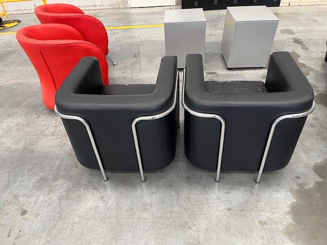 • Assorted Office Furniture, 2 x Red reception chairs, 2 x Black bucket chairs, Fold down couch, Drawer unit