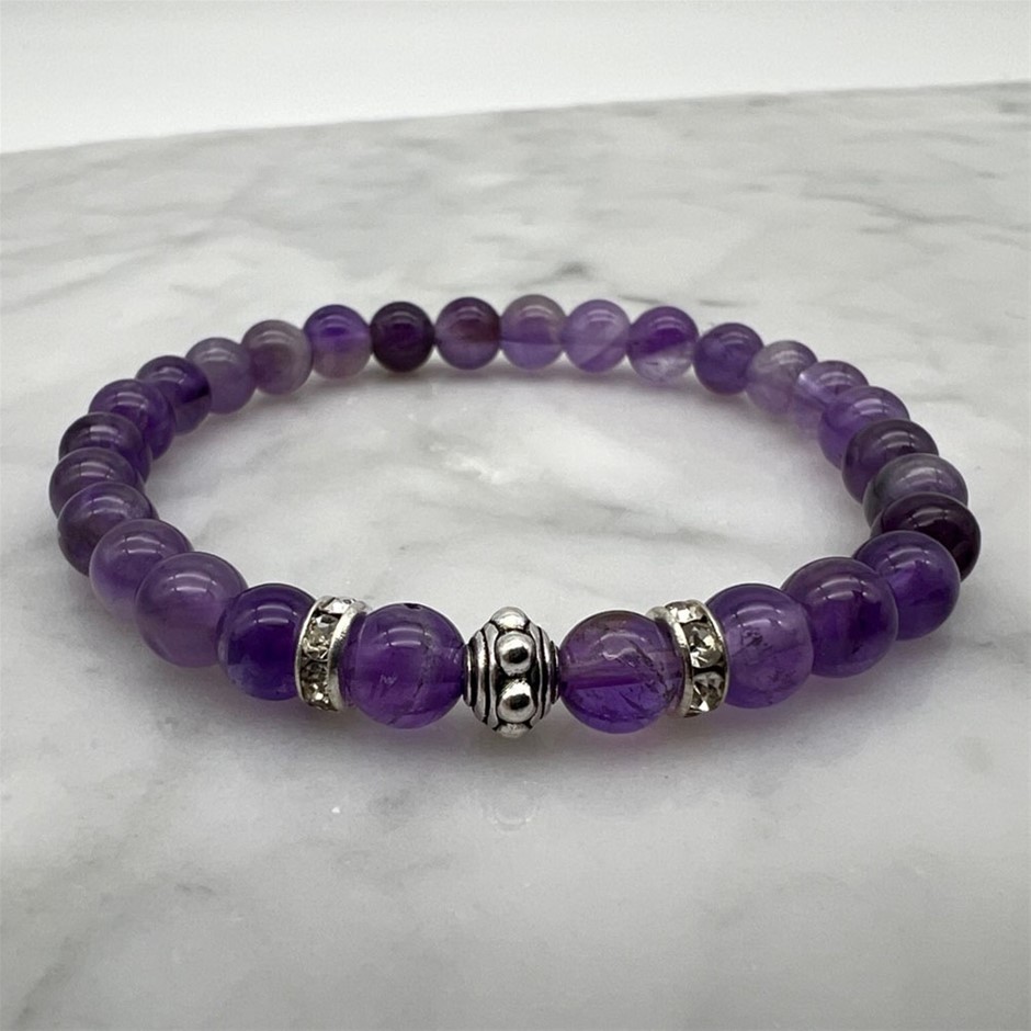6mm Amethyst & Rhinestone Stretch Beaded Bracelet