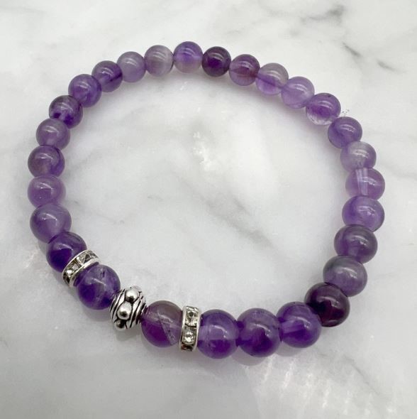 6mm Amethyst & Rhinestone Stretch Beaded Bracelet