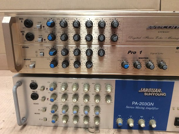 Jarguar Suhyoung PA-203GN Stereo Mixing Amplifier&Weconic Pro 1 Digital Echo Mixing Amplifier (Lot of 2)