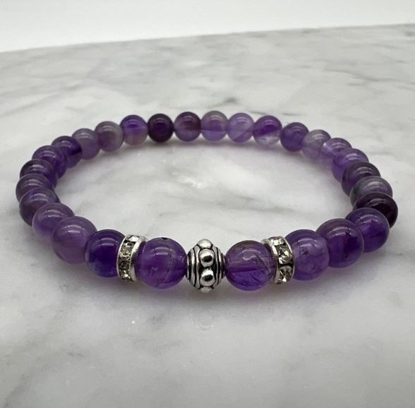 6mm Amethyst & Rhinestone Stretch Beaded Bracelet