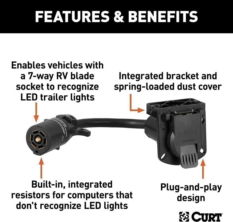 2 x CURT 7-Way RV Blade LED Electrical Adapters, 57003. (Code: B00AFVOF3M-K2) (332427-52)