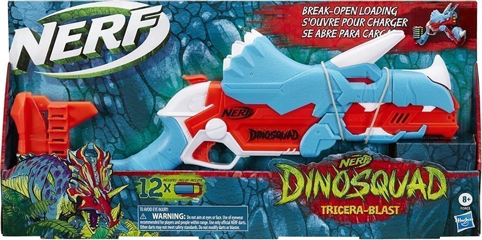 NERF DinoSquad Tricera-blast Dart Blaster, Break-Open 3-Dart Loading, 12 Official Nerf Darts, Dart Storage, F0803. (Code: B08HSPMMV4) (331952-52)