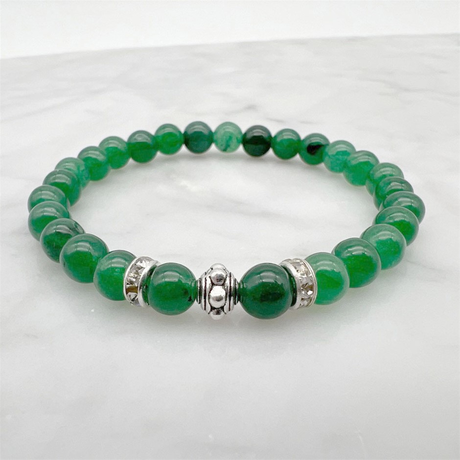 6mm Green Aventurine & Rhinestone Stretch Beaded Bracelet