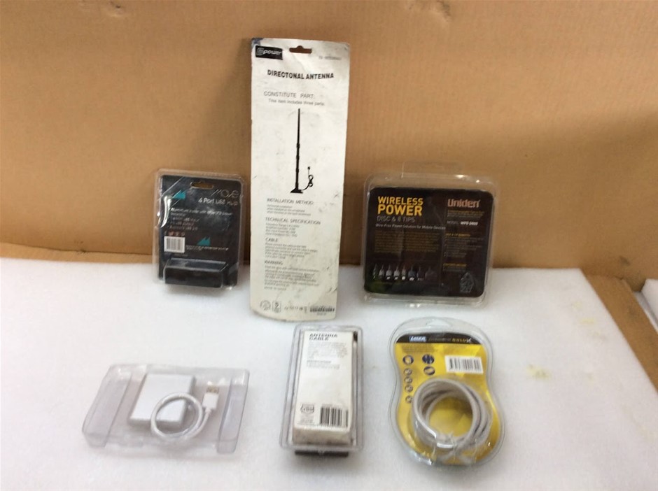 Mixed Brands Wireless Charger, USB Hub, Antenna Cable And Audio Cable Accessories - New (Lot of 6)