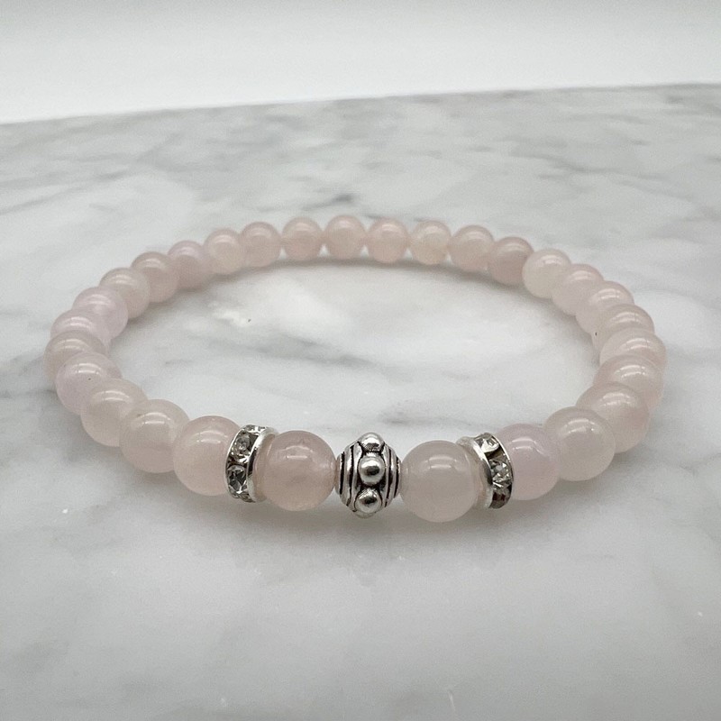 6mm Rose Quartz & Rhinestone Stretch Beaded Bracelet