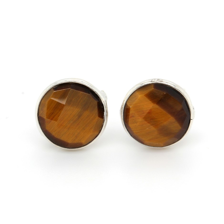 Elegant Handcrafted Tiger Eye Stud 925 Sterling Silver Gemstone Earrings