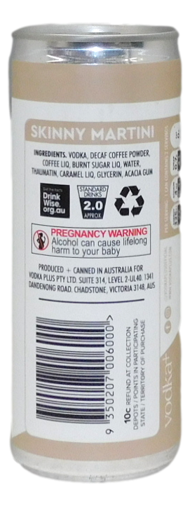 Vodka+ Skinny Martini Espresso Pre Mix Cans (24x 250mL), Aus