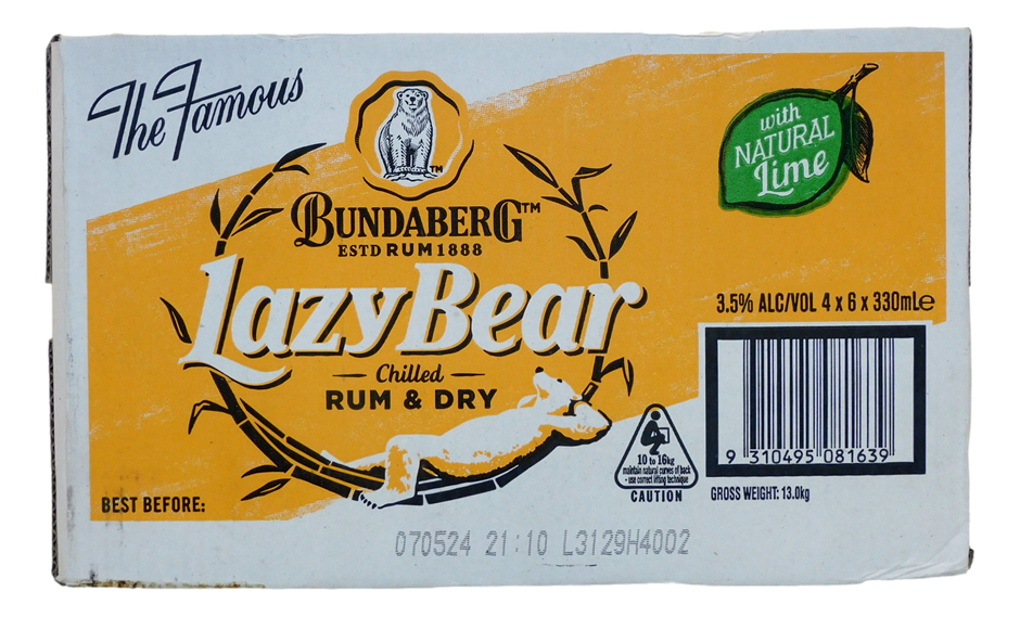 Bundaberg Lazy Bear Rum and Dry with Natural Lime (24x 330mL) QLD.