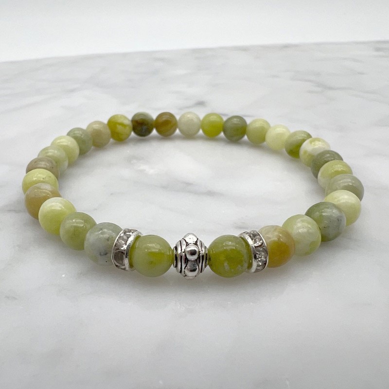 6mm Peridot & Rhinestone Stretch Beaded Bracelet