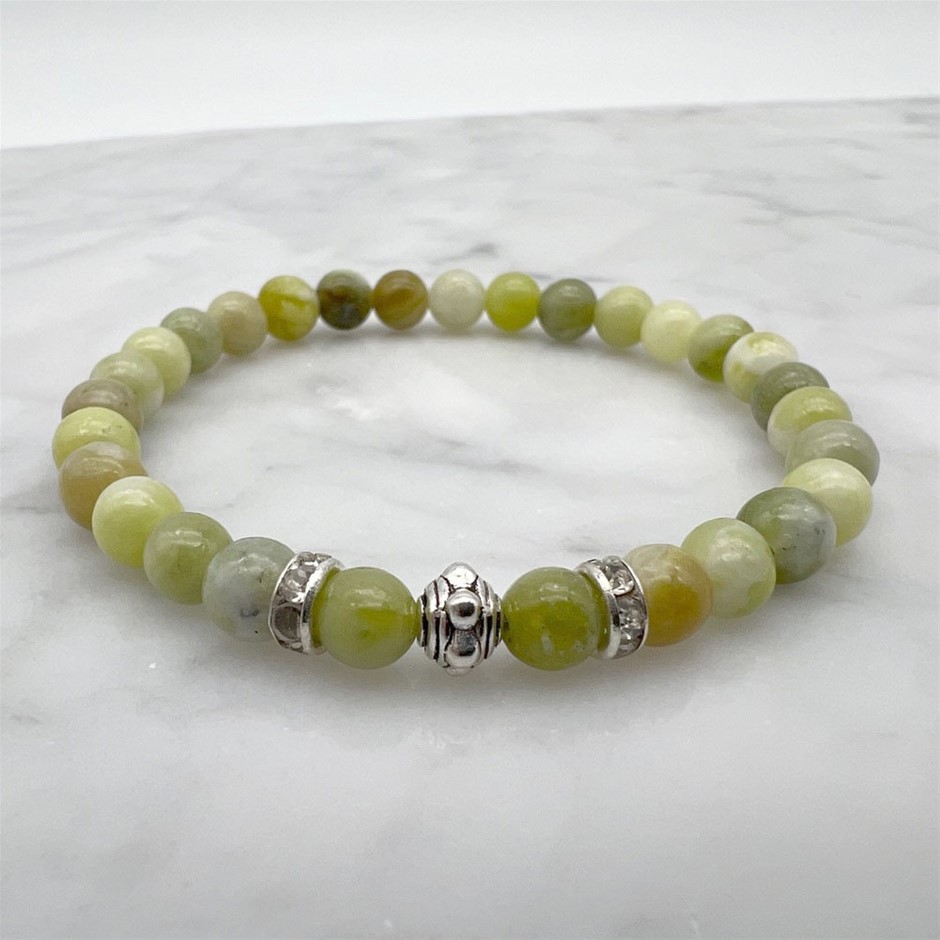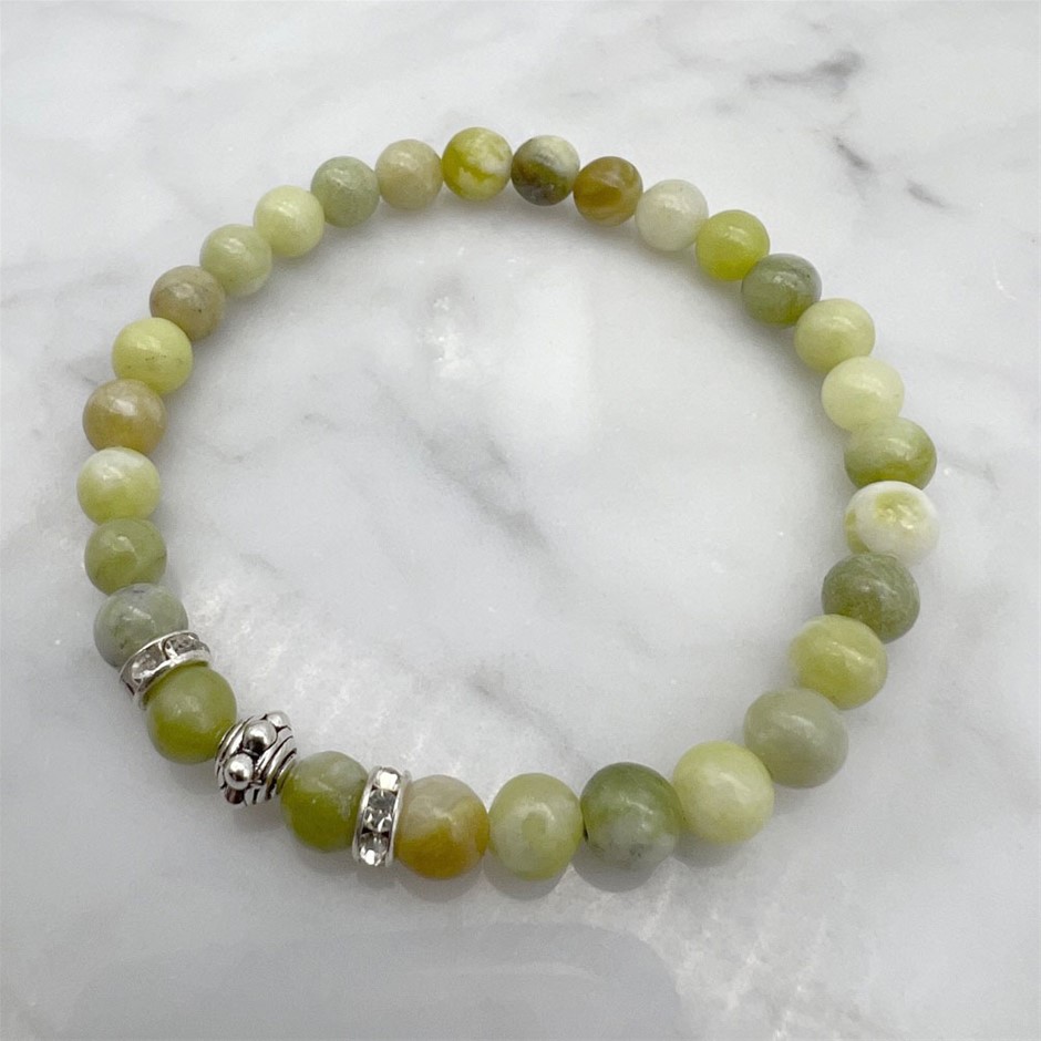 6mm Peridot & Rhinestone Stretch Beaded Bracelet