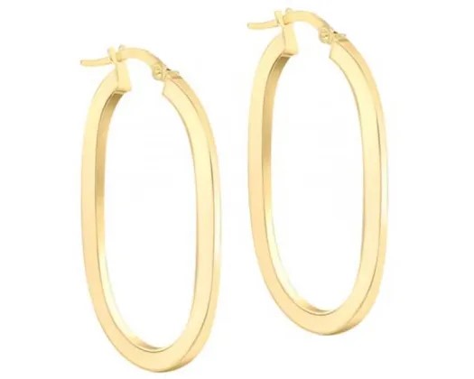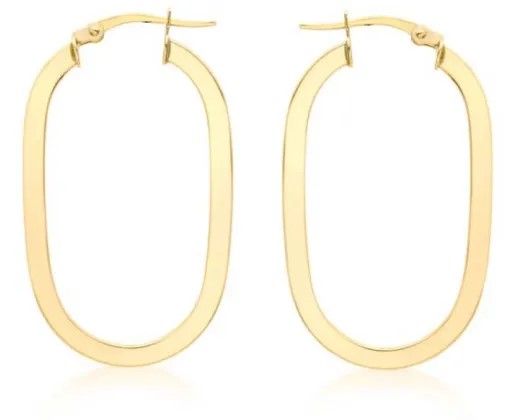 9K Yellow Gold Flat Oval Hoops