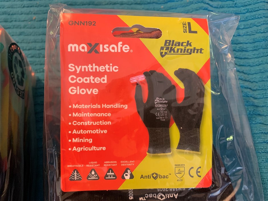 New in Packets Maxisafe Synthetic Coated Gloves, Quantity 24 Pairs;
