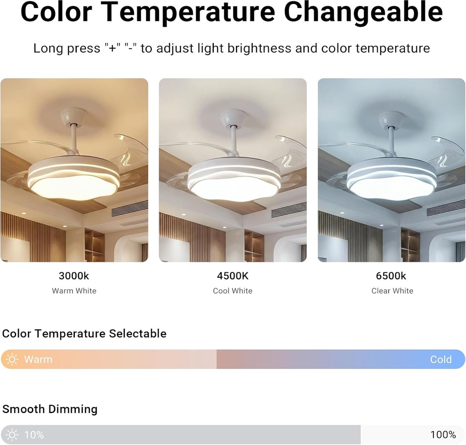 USOR Retractable 42`` Ceiling Fans with Lights and Remote, Smart Modern Ceiling Fan, Stepless Color Changeable & Dimmable, 6-Speed Reversible Timer Ceiling Fan Light Kit. (Code: B0FYDW7SFC) (334423-55)