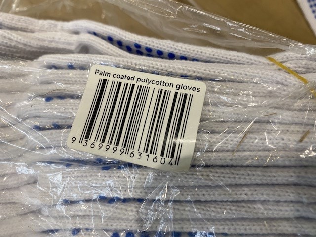 Pallet of Cotton Work Gloves Palm Coated with PVC Dots