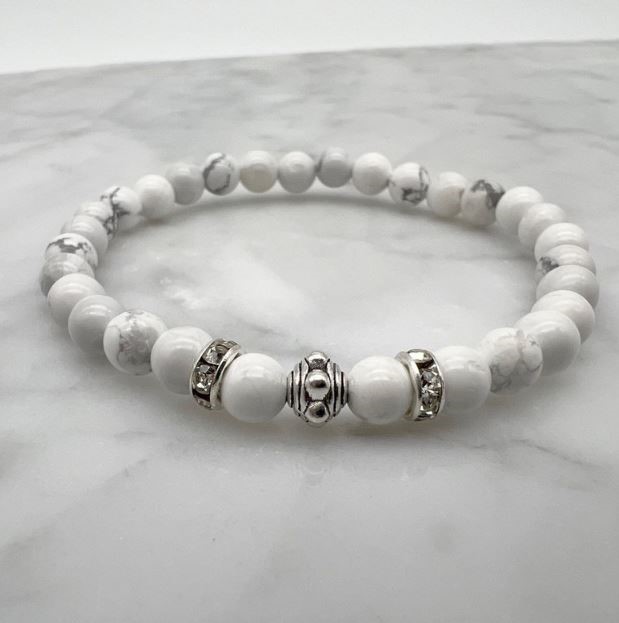 6mm Howlite & Rhinestone Stretch Beaded Bracelet