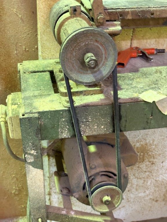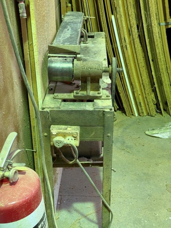 LINSHALL belt driven wooden lathe on solid stell frame