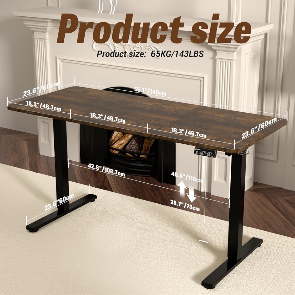 ERGOMAKER Adjustable Height Electric Standing Desk, 140x60cm, Black Frame / Rustic Brown Desktop. (Code: B0CX53QXY8) (334887-56)