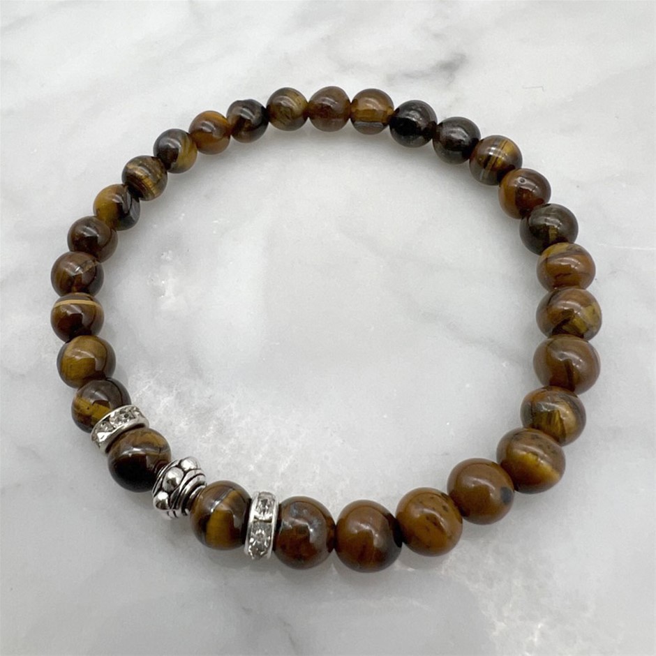 6mm Tiger Eye & Rhinestone Stretch Beaded Bracelet