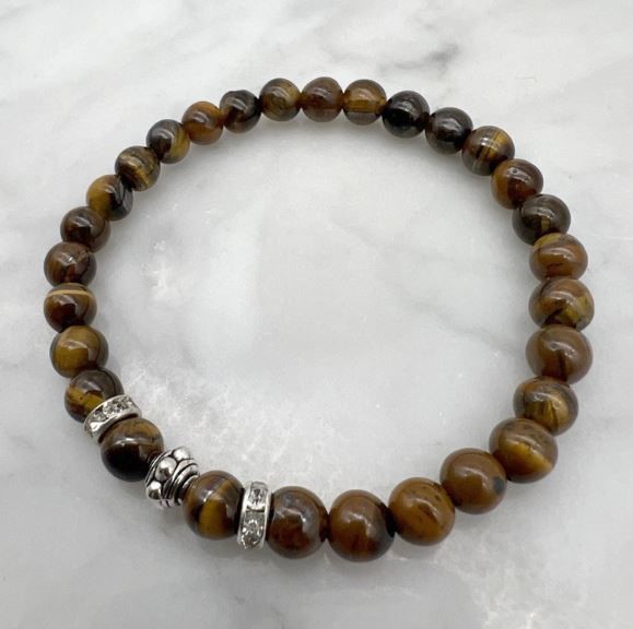 6mm Tiger Eye & Rhinestone Stretch Beaded Bracelet
