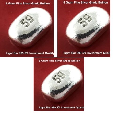 Silver Bullion 999.5 Fine Grade 5g Investor Quality Ingot Bar Hand Poured x 3