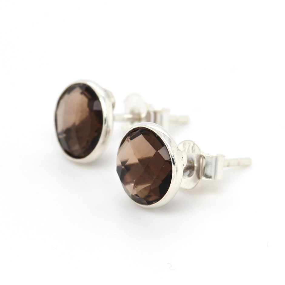 Elegant Handcrafted Smoky Quartz Stud 925 Sterling Silver Gemstone Earrings