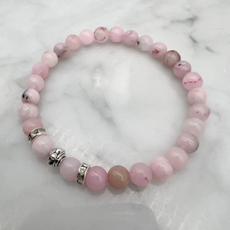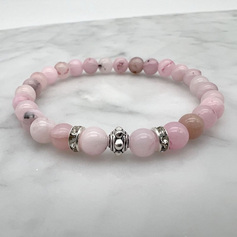 6mm Cherry Blossom Jasper & Rhinestone Stretch Beaded Bracelet